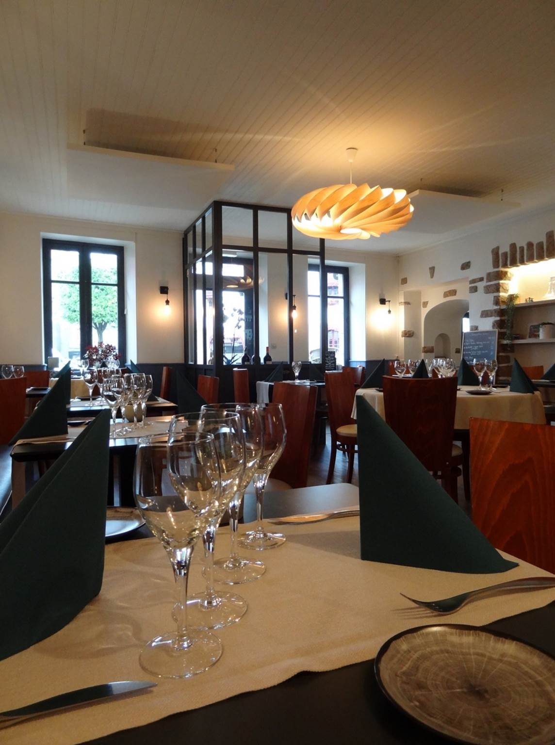 * Au RDC : 1ère salle de restaurant de # 31 m² (25 places) avec côté bar de # 8 m² + 2nde salle de restaurant de # 54 m² (35 places) + WC PMR + cuisine de # 47 m² + laverie de # 6 m² + espace vestiaires et buanderie + cave aménagée + cour extérieure et local poubelle avec accès fournisseurs